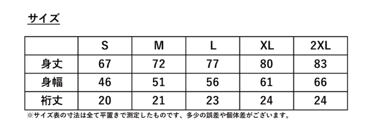 ※サイズ表の寸法は全て平置きで測定したものを記載していますが、商品や生産ロットによって多少の誤差や個体差がございます。